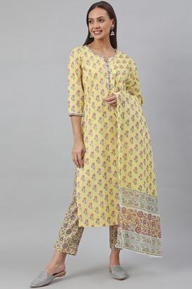 Buy Janasya Floral Cotton Round Neck Women S Salwar Suit Shoppers Stop